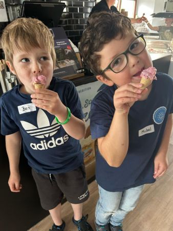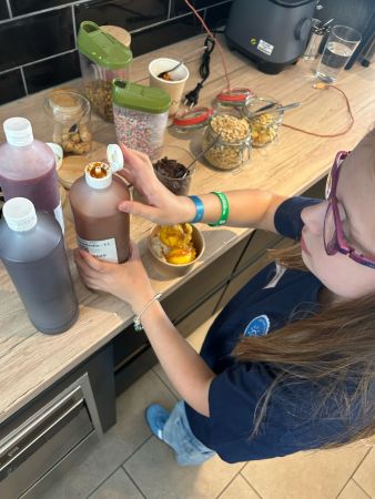 Auch kulinarisch wurde einiges geboten: Beim Küchenabenteuer mit Milena stellten die Kinder Frischkäse, Mozzarella, Brot und sogar Schokoaufstrich selbst her. Das Kochen mit dem Thermomix bot zusätzlich moderne Küchentechnik zum Anfassen. Besonders lecker und lehrreich war die Erlebnis-Eis-Veranstaltung bei Eiszeit – hier ging es um die Entstehung, die Zutaten und natürlich den Geschmack des Lieblingseises.