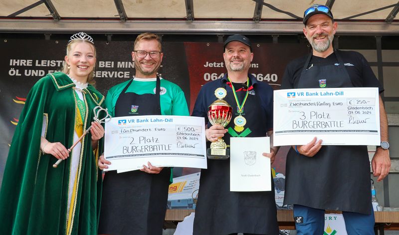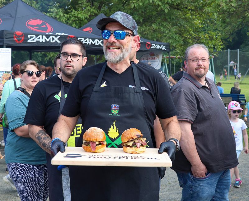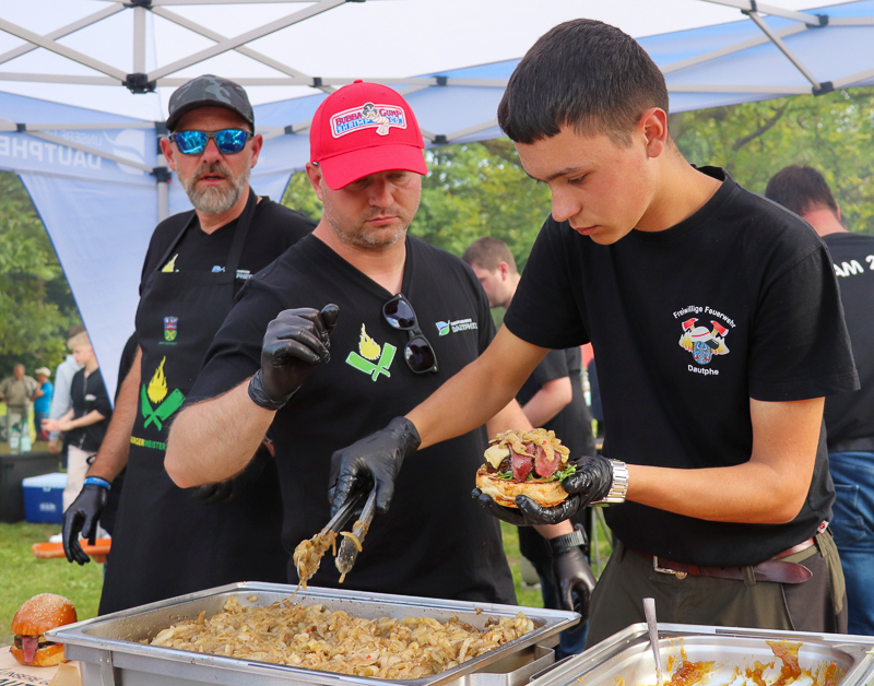 Bei der diesjährigen Bürgermeister-Burgerbattle in Weidenhausen konnte Dautphetal erneut einen Platz auf dem Siegerpodest ergattern! Unser Bürgermeister Marco Schmidtke und sein Team aus Mitgliedern der Feuerwehren Dautphe, Wolfgruben und Mornshausen haben mit ihrem „Fire Fighter Meat and Great“ einen köstlichen Dautphetal-Burger zubereitet, der die Jury beeindruckte. Der Dautphetal-Burger überzeugte mit einer würzigen Chipotle-Sauce und einem Mango-Chutney, serviert auf einem Bun von der Bäckerei Leinweber.