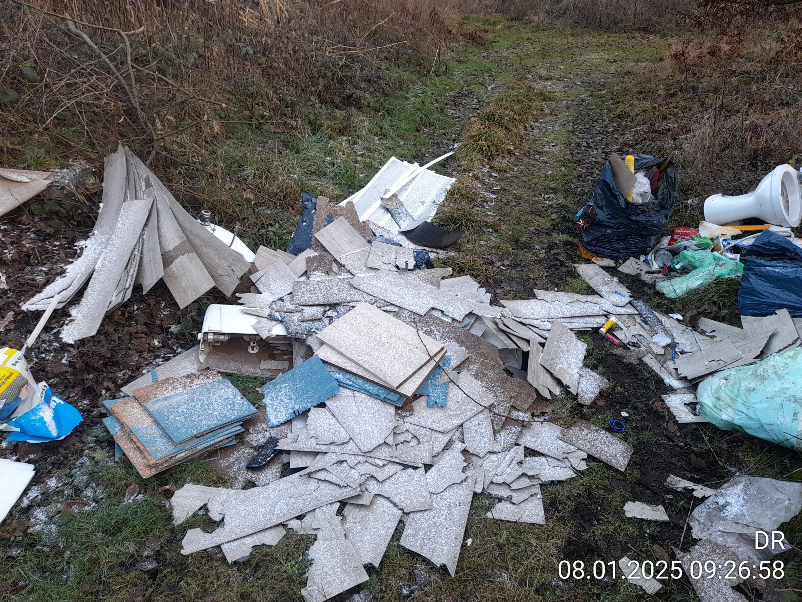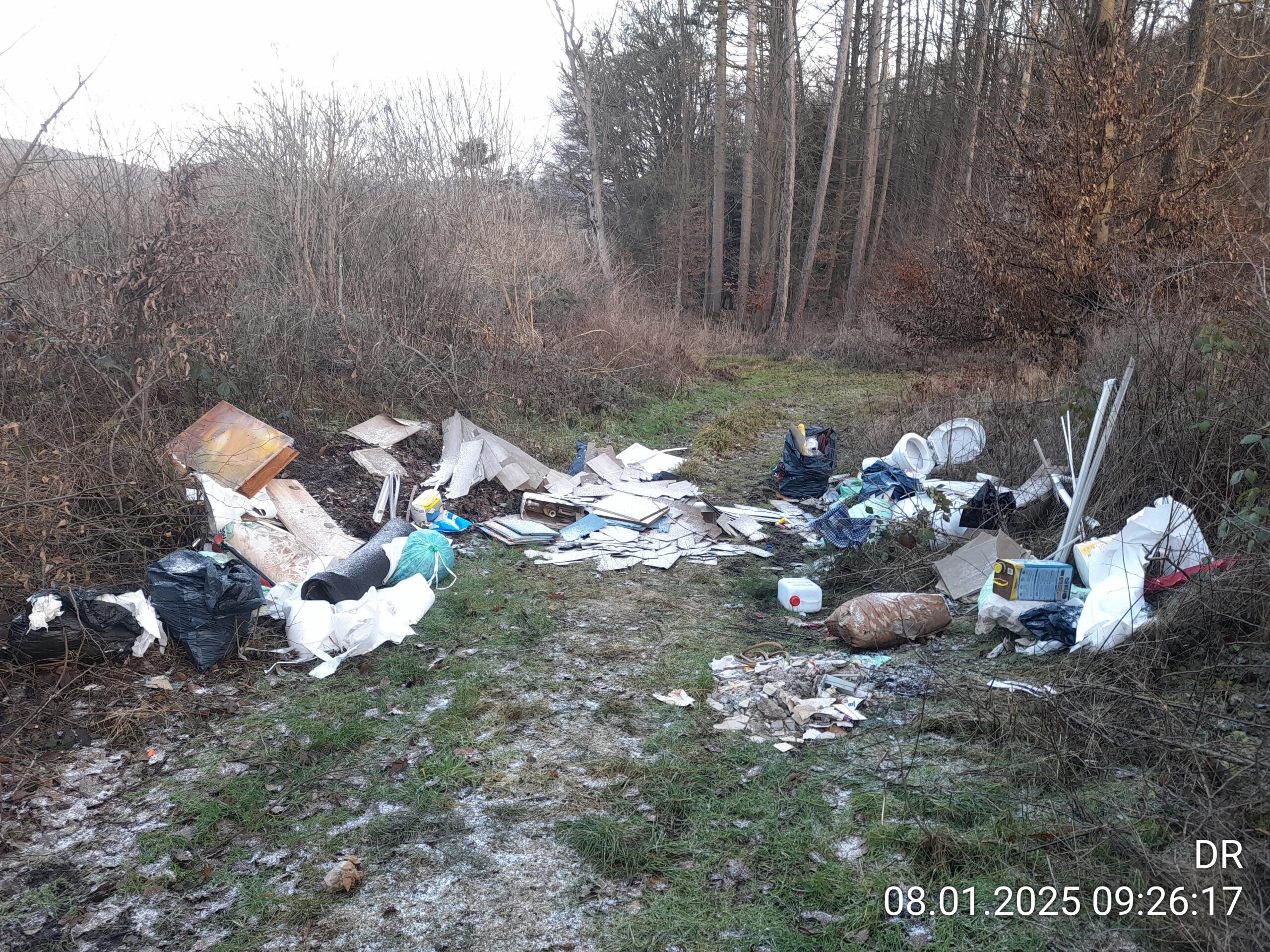 Anfang Januar 2025 wurde uns die „Entsorgung“ von wildem Müll in der Gemarkung „In der Struth“ (Zufahrt zu einem Forstweg an der K74) zwischen Holzhausen und Herzhausen gemeldet.