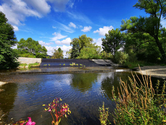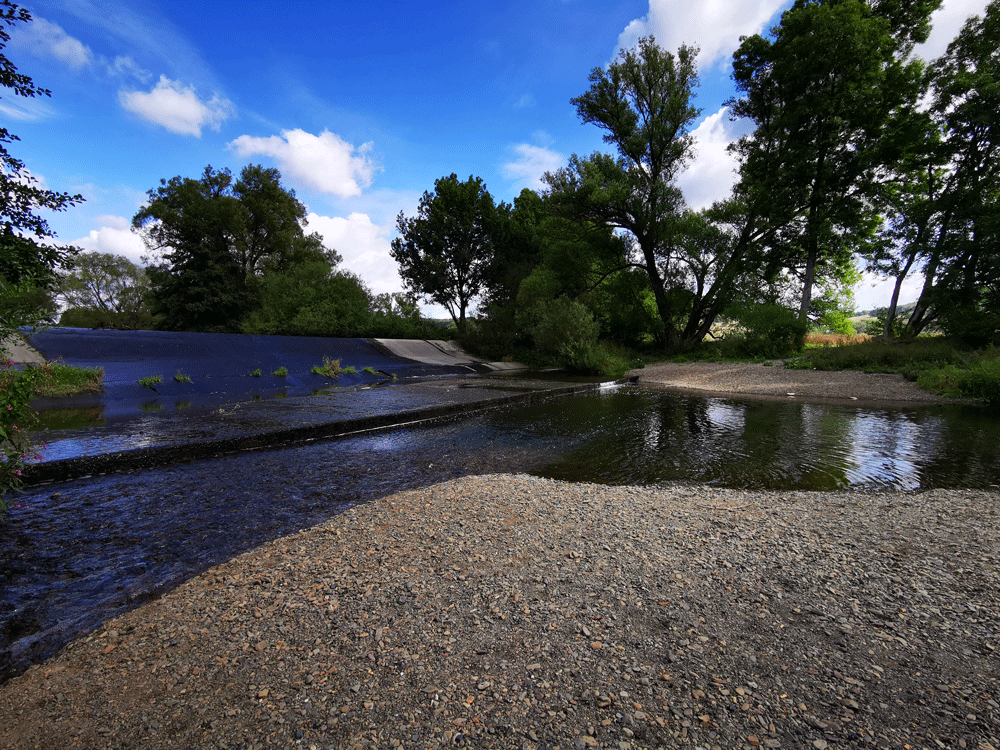 Picknicken, Steine flitschen und plätscherndes Wasser. Am Lahn-Wehr in Wolfgruben kann man entspannt die Seele baumeln lassen. Hier wird die Lahn durch einen Betonwall gestaut. Die Lahn fließt langsam die Betonmauer herunter. Die Wasserstelle unterhalb des Wehrs ist nicht nur bei Kindern und Hunden zum spielen beliebt. Im flachen Wasser kann man Steine sammeln und Fische beobachten. Der kleine Steinstrand direkt an der Lahn lädt außerdem zum Verweilen ein.