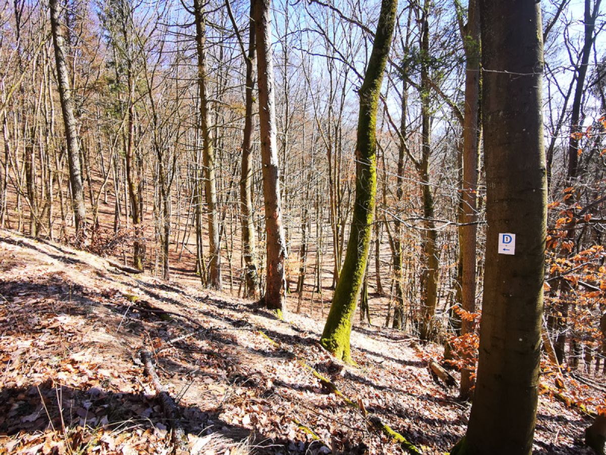 Nachdem Sie verschnauft haben, können Sie die letzten Kilometer des Rückwegs antreten. Die nächsten 2 km gehen noch einmal bergauf. Auf diesem Streckenabschnitt werden 110 Höhenmeter zurückgelegt. Sie lassen den Gipfel der Kappe rechts liegen und gehen ab Kilometer 13,8 nur noch bergab.