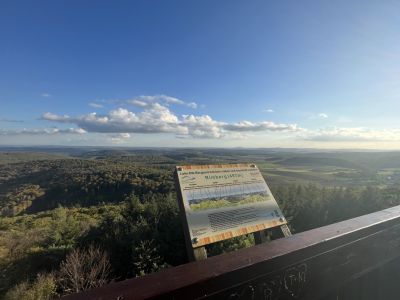Oben angekommen sollten Sie den 24 Meter hohen Rimbergturm besteigen. Von dessen Aussichtsplattform hat man einen schönen Panoramablick über das Hinterland. Bei guten Sichtverhältnissen kann man bis zur Wasserkuppe und dem Großen Feldberg gucken. Auf dem Weg ins Tal führt Sie der Weg an einer Drachenhöhle vorbei. In Damshausen können Sie in der Hinterländer Bauernschänke für eine Pause einkehren.