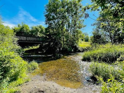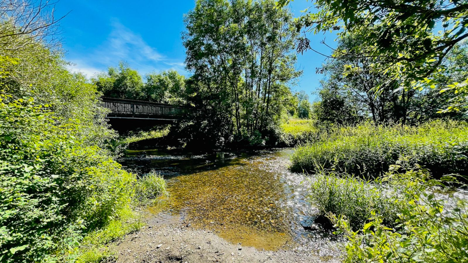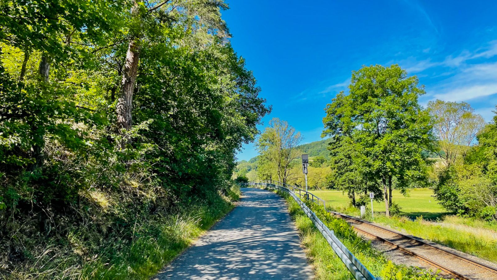 Kurz vor dem Ortseingang Buchenau lädt eine flache Stelle der Lahn zur Abkühlung ein. Weiter geht es auf einem Bürgersteig Richtung Buchenauer Bahnhof. Der D10 führt die Wanderer nun wieder zurück zur Lahn. Nachdem die Bahnschienen überquert wurden, führt der Weg stetig bergauf.
