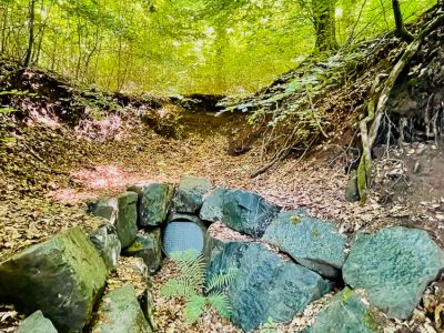 Durch kühle Laubwälder führt der D10 nun zur Grube Clara. Von dem ehemaligen Bergwerk ist heute nur noch der Eingang zu sehen.