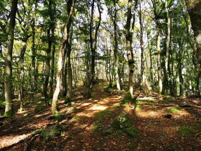 Nach der schönen Sicht auf die Piste erreicht der D4 den Grenzweg zwischen Dautphetal und Bad Endbach. Der Wanderweg führt auf einem gut begehbaren Waldweg und einem idyllischen Pfad bis zum alten Steinbruch „Schwarzer Stein“. Danach geht es oberhalb des Feriengebiets weiter. Der D4 verlässt nun kurz die Gemeinde Dautphetal, um die besonders schöne Aussicht am alten Steinbruch in Gladenbach-Rachelshausen zu genießen. Der Rastplatz hier lädt zu einem kleinen Picknick ein. Von da geht es über einen Waldpfad zum Allberg Hochmoor am höchsten Punkt der Strecke.