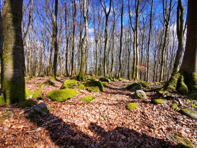 Ab hier ist der Name Programm: Die Strecke führt bergauf in Richtung Weißenberg. Steile Passagen wechseln sich immer wieder mit flachen Abschnitten ab, so dass der Aufstieg zu den Windrädern gut zu bewältigen ist. Der D7 lässt befestigte Wege meist unbeachtet und wählt stattdessen lieber Pfade zwischen Bäumen und entlang von Felsen.
