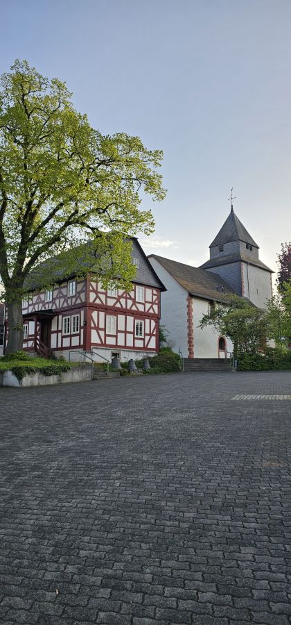 Nach dem Start am Bahnhof Buchenau überqueren Sie die Lahn und biegen in den alten Ortskern ab. Auf Straßen aus Kopfsteinpflaster passieren Sie alte Fachwerkhöfe.