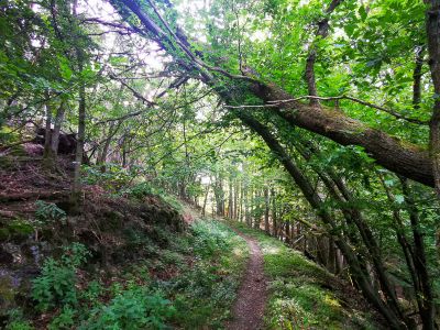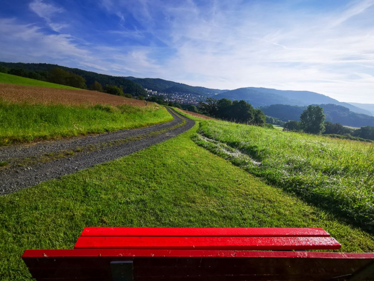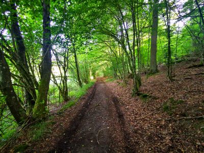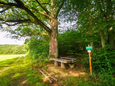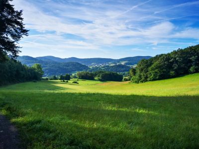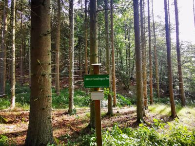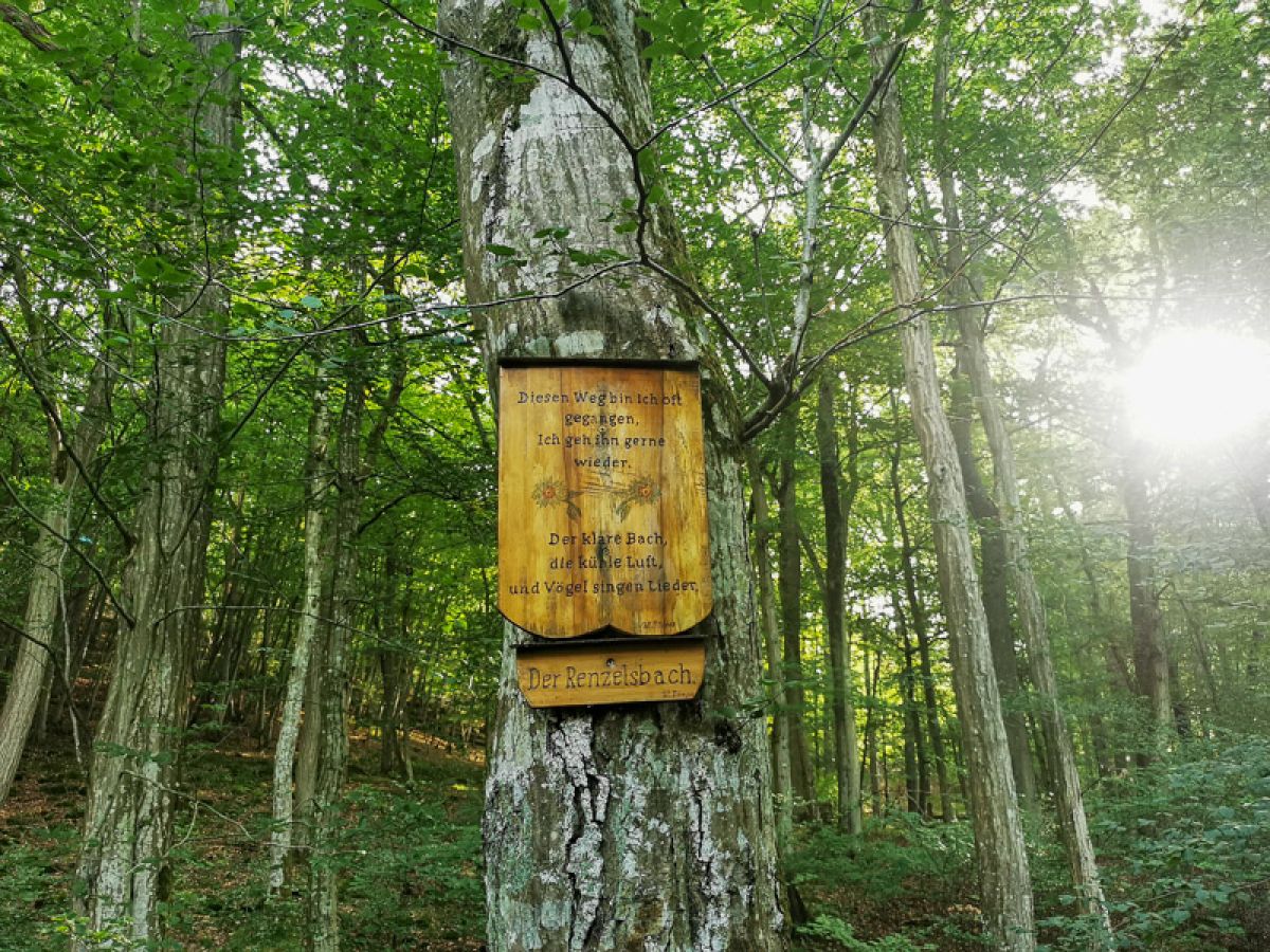 Es geht weiter durch das Katzenbacher Tal und zurück in den Wald. Beim Wolfsgeschirr treffen verschiedene Wanderwege aufeinander und man kann auf installierten Infotafeln nachlesen, dass hier 1747 der letzte Wolf der Region erlegt wurde. Nachdem Sie den Anstieg zum höchsten Punkt der Runde auf 458 hm geschafft haben, führt Sie der Weg an der Leutnantsbank vorbei. Ab hier bringen Sie viele Abstiege, unter anderem durch das Lauterbachtal, zurück zum Ausgangspunkt am Bahnhof.