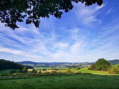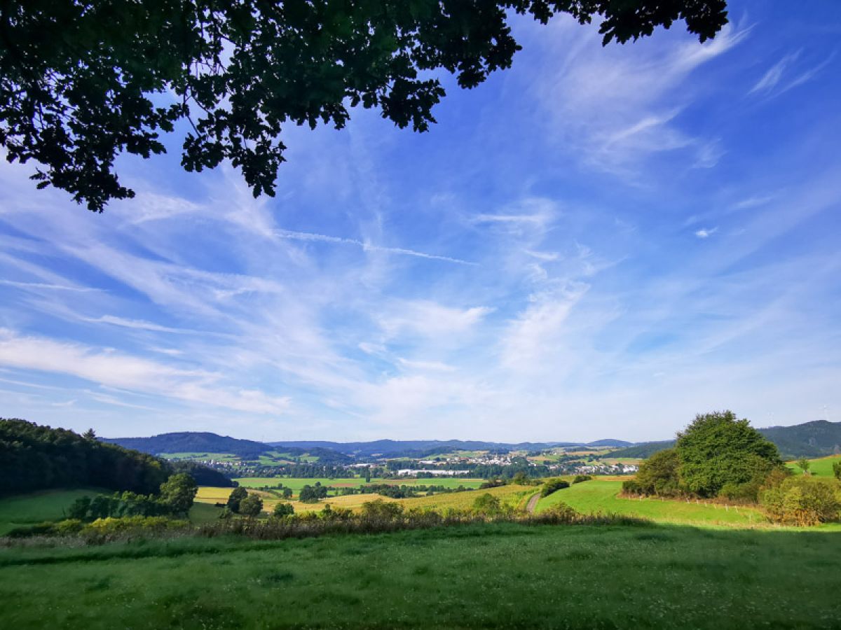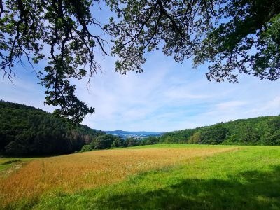 Nachdem Sie dem Ort den Rücken gekehrt haben, folgt ein Anstieg Richtung Aussichtspunkt am Ochsenberg. Schon auf dem Weg kann man immer wieder einen Blick auf das historische Gebäude der Carlshütte werfen und einen Fernblick auf Allendorf genießen. Der D9 führt Sie zum Grenzpunkt zwischen Buchenau, Friedensdorf und Kombach. Von hier hat man einen schönen Panoramablick ins Lahntal: Friedensdorf, Dautphe, Wilhelmshütte und Wolfgruben sind gut zu sehen.