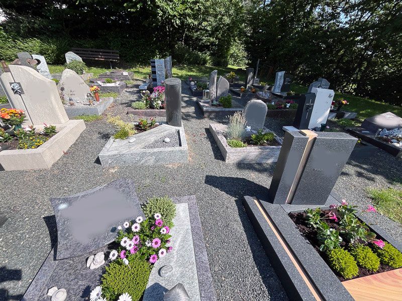Je nach Art der Grabfläche sind Grabplatten, Grabsteine oder eine dezente Bepflanzung möglich.