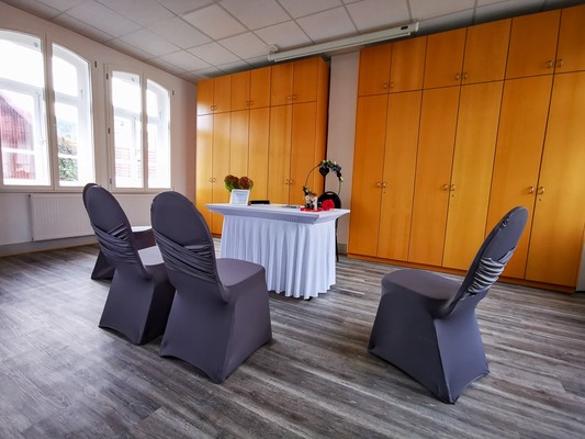 Die Anmietung mit des alten Rathauses müssen Sie selbstständig nach Ihrem Termin im Standesamt bei dem Buchenauer Ortsvorsteher vornehmen. Die Zusatzkosten für die Trauung in Buchenau belaufen sich auf 26,50 Euro. Im alten Rathaus steht ebenfalls eine Küche zur Verfügung. Für die Nutzung dieser Räumlichkeit entstehen Gebühren von 25,56 Euro. Nach Rücksprache kann der Raum im Obergeschoss am Tag vor der standesamtlichen Trauung dekoriert werden.