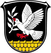 Die Friedenstaube als Symbol für den Ort Friedensdorf war naheliegend. Aber nicht nur die Verbindung zum Ortsnamen, auch der nachvollziehbare Wunsch der Friedensdörfer nach Frieden kommt mit dem Symbol zum Ausdruck. 1958 wurde der damaligen Gemeinde Friedensdorf vom Hessischen Minister des Inneneren die Genehmigung erteilt ein Wappen zu führen, dass folgendermaßen beschrieben ist: „In Schwarz über einem goldenen Dachfirst eine fliegende weiße Taube mit einem Ölbaumzweig im Schnabel; Schnabel und Füße sind rot.“ Nachdem ein Buchenauer Künstler das Wappen optisch angepasst hat und diese Version auch im örtlichen Bürgerhaus hängt, wurde es im Jahr 2022 wieder an die Originalvorgaben angepasst.